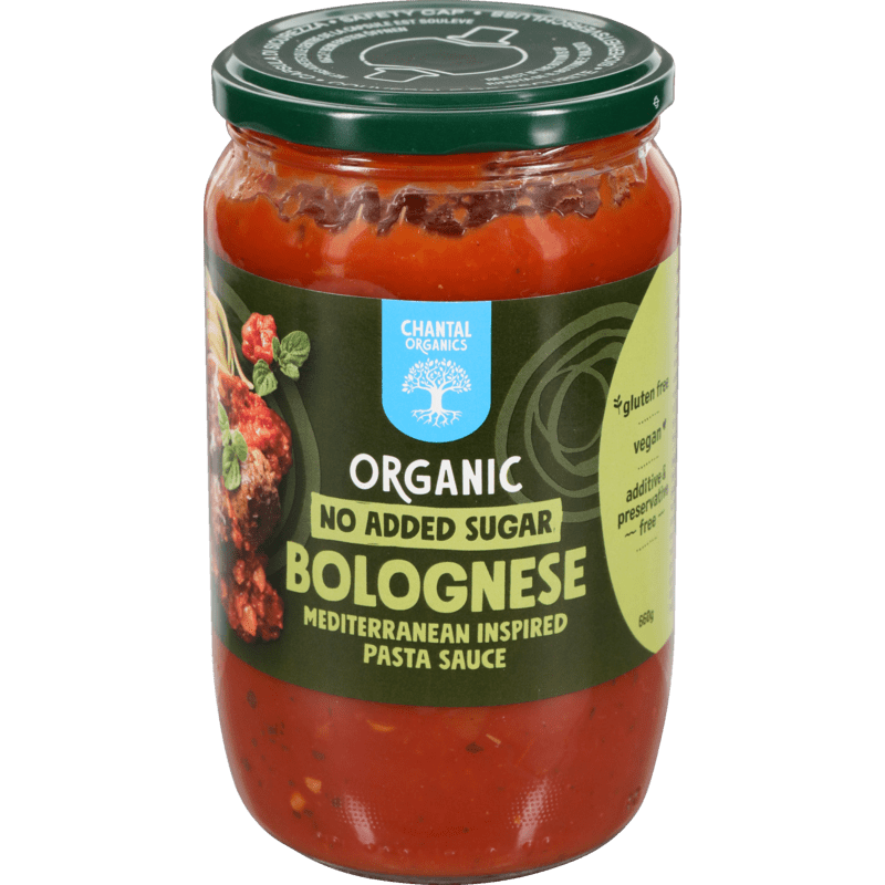 Chantal Organics No Sugar Added Bolognese Sauce is a wholesome pantry essential made from sun-ripened organic tomatoes, fresh onions, garlic, herbs and spices. With no added sugar or artificial ingredients, it delivers a rich, traditional Italian-style flavour that’s perfect for family meals.