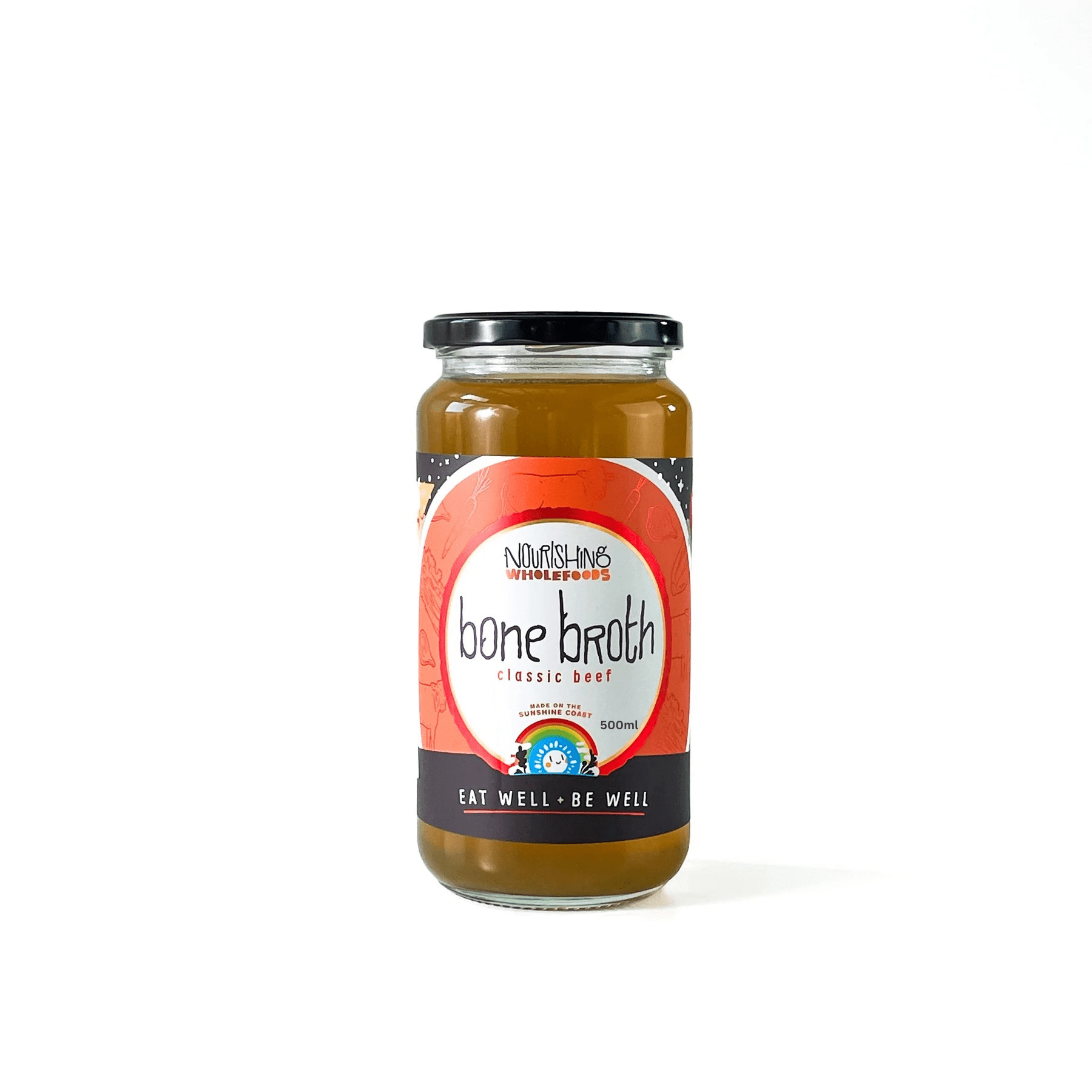 Nourishing Wholefoods Beef Bone Broth is handcrafted in small batches on the Sunshine Coast using grass-fed beef bones sourced from local farmers. The bones are simmered for 24 hours in filtered rainwater with a splash of organic apple cider vinegar to extract maximum collagen, gelatin and bioavailable minerals.