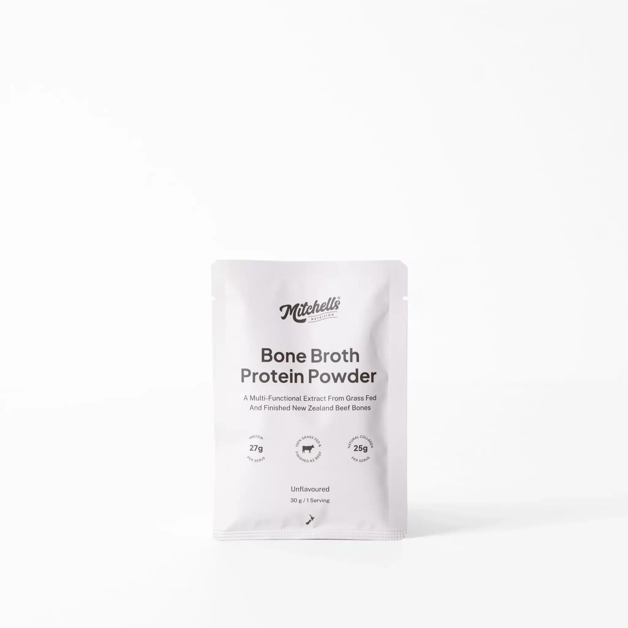 This convenient 30g single-serve of Mitchells Nutrition Bone Broth Protein Powder offers all the benefits of the full-size version in a lightweight, travel-friendly size. Made from 100% grass-fed and finished New Zealand beef, it provides a clean and easily digestible source of protein and naturally occurring collagen.