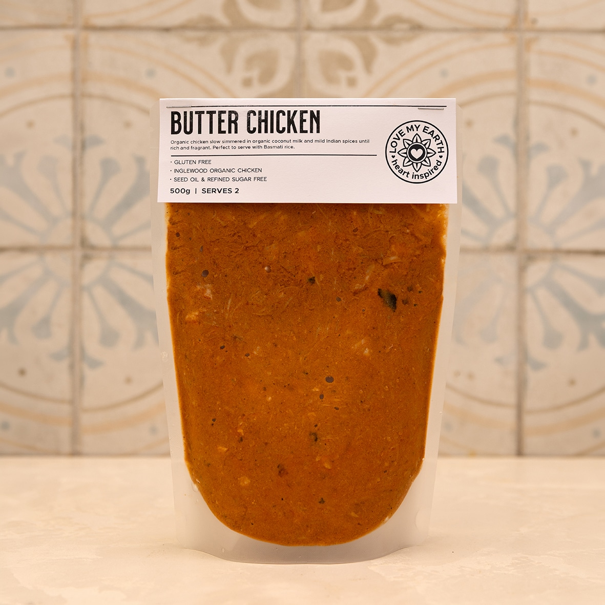 Love My Earth Butter Chicken is a ready-made meal inspired by a classic Indian dish, prepared with organic chicken thigh, coconut milk, and a blend of mild spices. Slow-simmered to develop a smooth, rich sauce, it offers a balanced and approachable flavour suited to everyday meals.