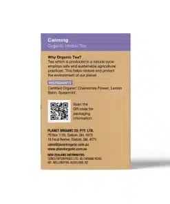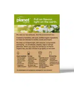 Planet Organic Calming Tea is a gentle, soothing infusion crafted from a harmonious blend of certified organic spearmint, lemon balm and chamomile flowers. With its refreshing herbal notes and subtle floral finish, this tea is designed to support moments of peace and relaxation. A perfect daily ritual for unwinding, grounding and easing the mind.