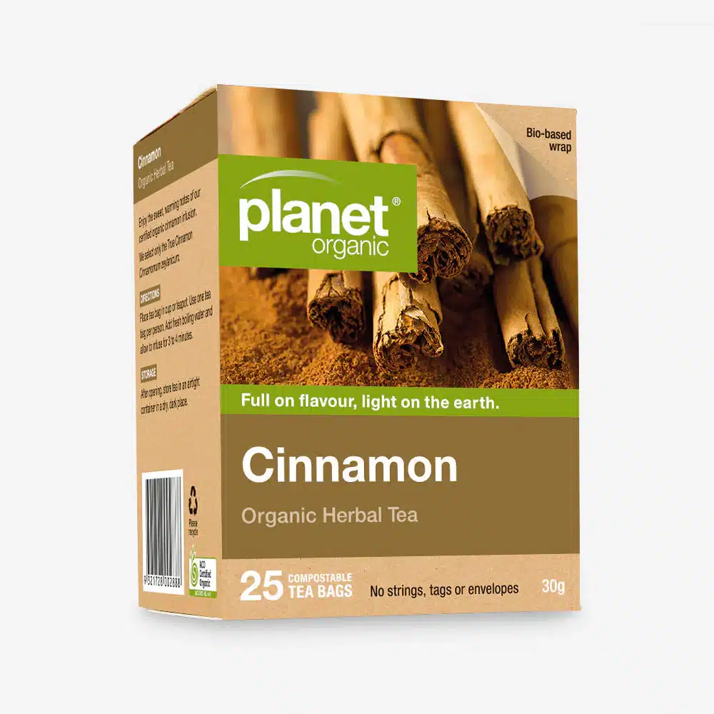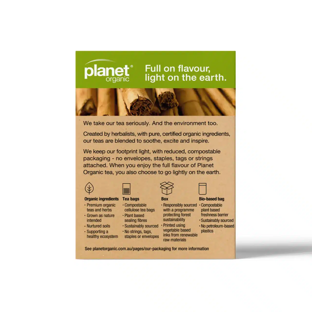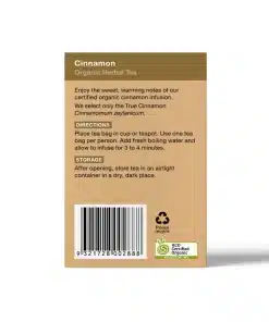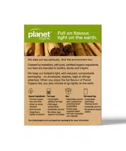 Planet Organic Cinnamon Tea is a pure, certified organic herbal infusion made from premium cinnamon chips. Rich, warm and naturally aromatic, this tea delivers a sweet, spicy flavour that’s both comforting and invigorating. Ideal for cosy evenings, after-meal sipping or anytime you want a naturally warming cup.