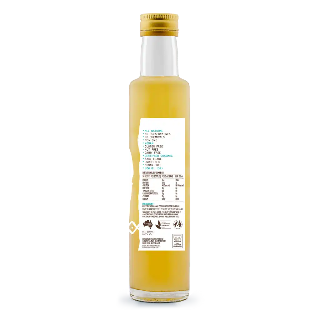 A life-changing, tangy vinegar handmade from pure, fermented coconut blossom nectar. Raw, organic, sugar-free and rich in natural prebiotics and “the Mother,” it’s a nutritious, alkalising alternative to apple cider vinegar. Fair trade, vegan, gluten free and good for gut health.