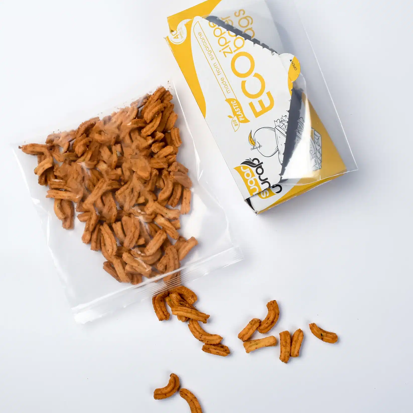 Small eco-friendly zipper bags made from renewable sugarcane. Strong, resealable and BPA-free—perfect for snacks, portioning, organising and everyday storage.