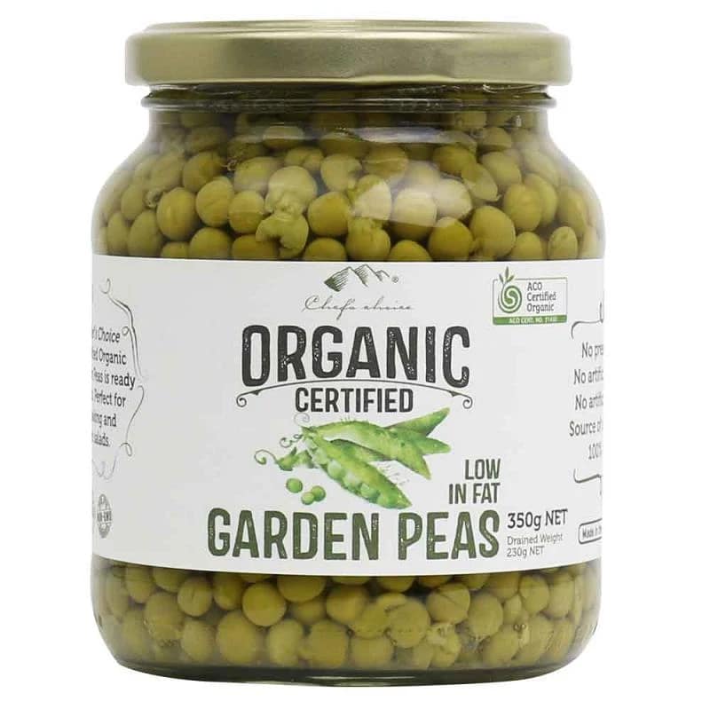 Chef’s Choice Organic Garden Peas are a convenient pantry option made with organic garden peas, water and sea salt. Preserved to maintain their natural texture and flavour, they offer an easy way to include vegetables in everyday meals without preparation.