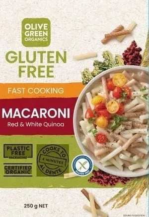 GF R&W Quinoa Macaroni from Olive Green Organics is an organic pasta made with a simple blend of organic rice and organic red and white quinoa. It is a practical pantry staple for everyday meals, especially when you want a quinoa pasta option with a light texture and a clean, straightforward ingredient list.