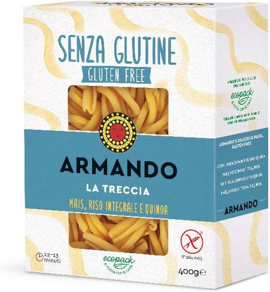 Armando Gluten Free Treccia is a carefully blended pasta made from corn, rice, and quinoa flours, shaped into a twisted treccia form. Its surface is designed to hold sauces effectively, giving it a similar functionality to traditional textured pasta while remaining gluten free.