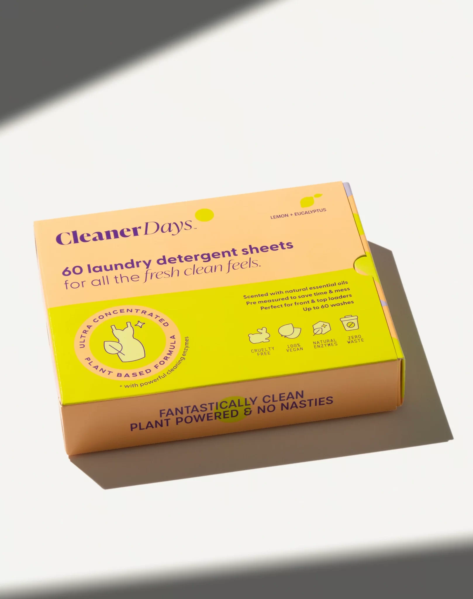 Infused with pure lemon and eucalyptus essential oils, these detergent sheets leave every load smelling clean, bright and lightly fragrant — without harsh artificial perfumes.