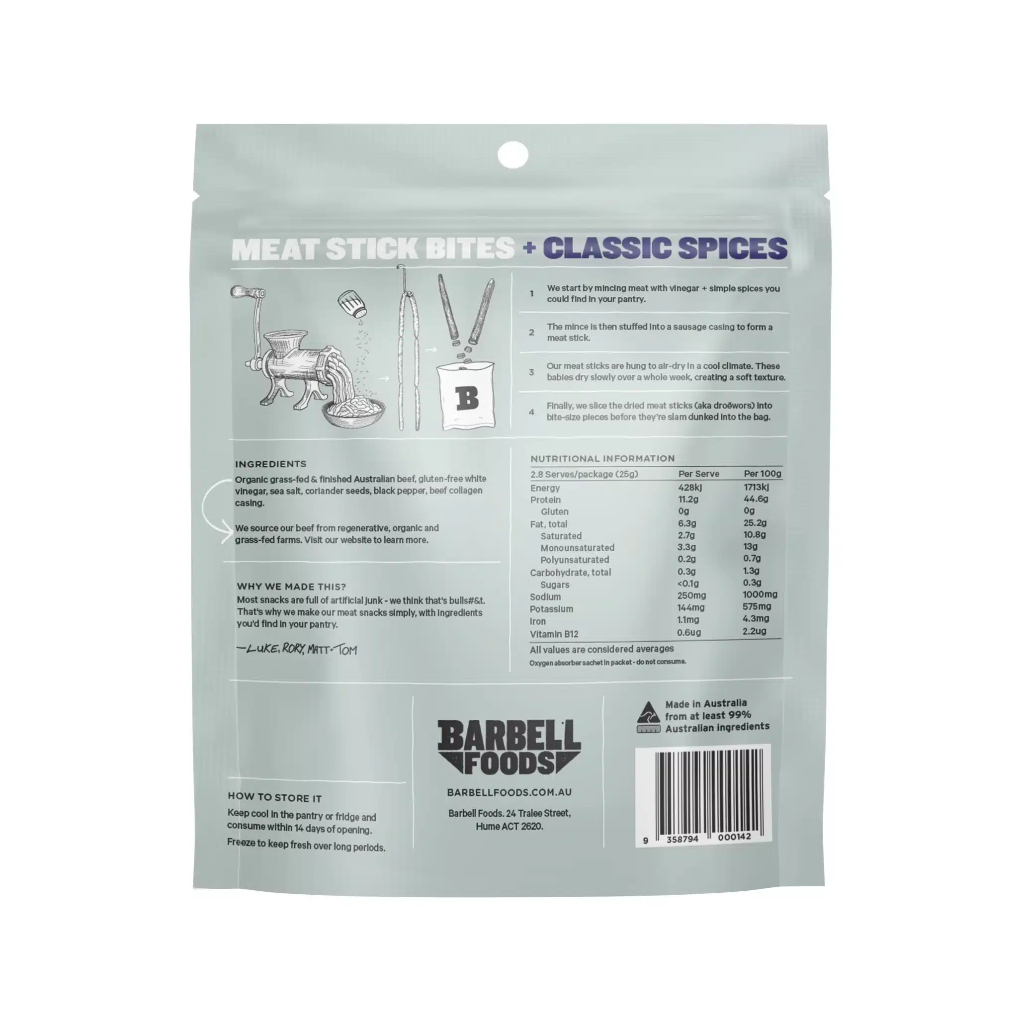 Our classic flavour is inspired by traditional spices used to make meat sticks (aka droëwors) – coriander seed and black pepper.