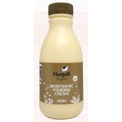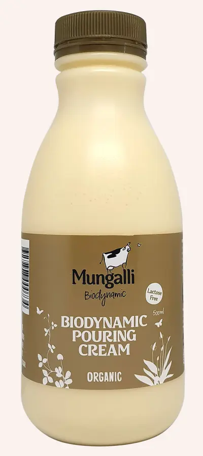 Mungalli Lactose Free Pouring Cream 500ml is made from biodynamic full cream milk and crafted to retain its natural richness and silky texture. Lactase enzyme is added to break down lactose, making it suitable for those who are lactose intolerant while still delivering the full flavour and body of traditional cream.