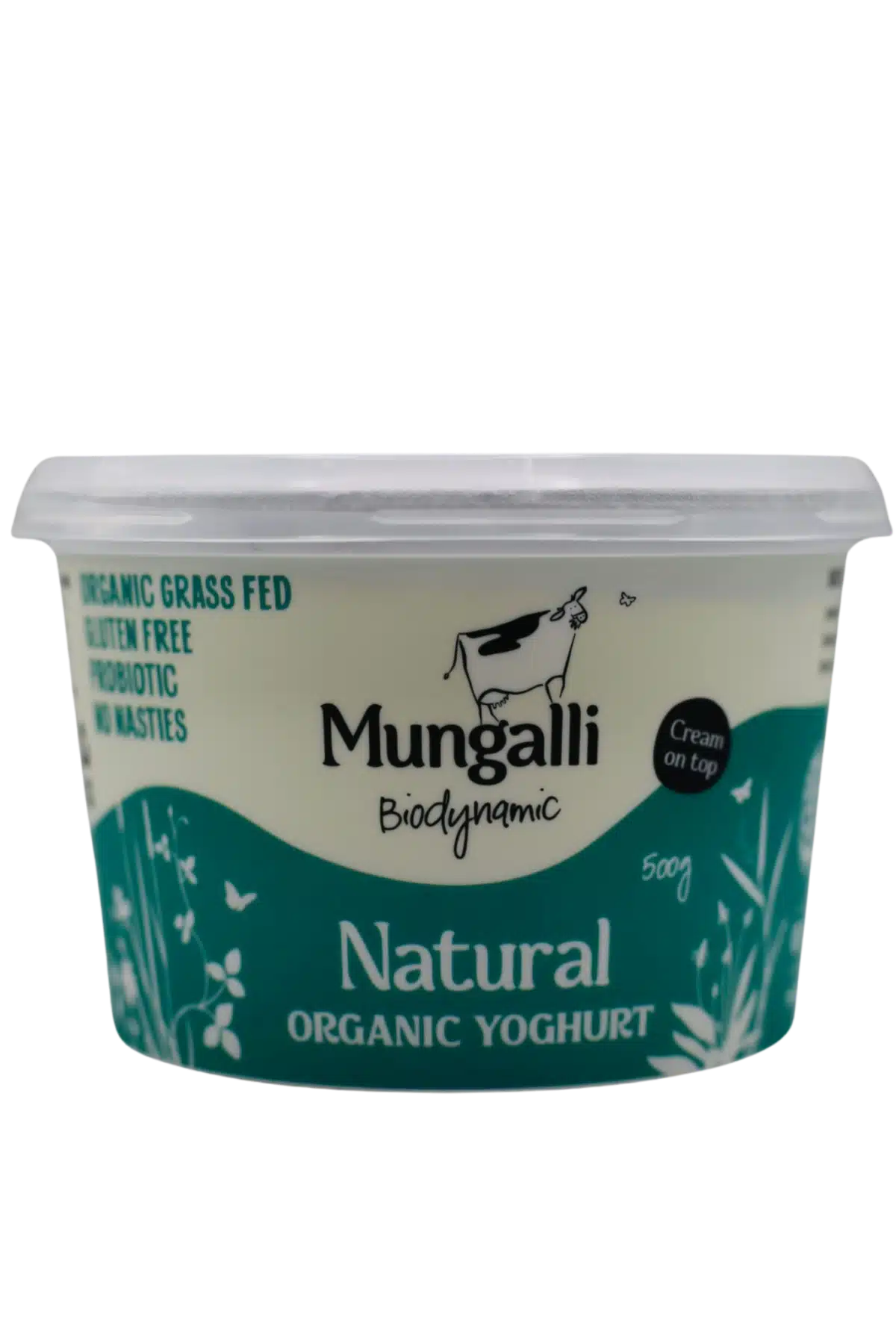 Organic pot-set yoghurt made from biodynamic full cream milk. Unhomogenised for a rich, creamy layer of natural cream on top — simple, pure, and probiotic-rich.