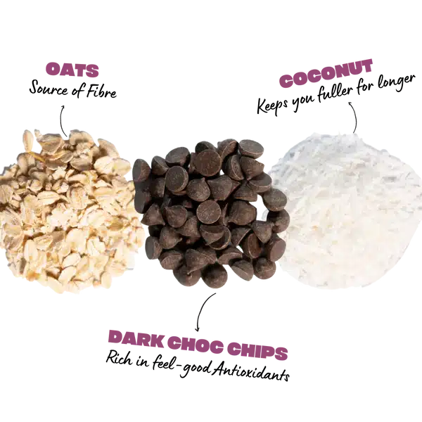Lovely to meet you – I’m the Dark Choc Chip Oat Bar. Made with Australian grown rolled oats and decadent (dairy-free and soy-free) dark chocolate chips, there isn’t a lot I can’t do. I make for a satisfying between meals snack, a quick breakfast on the go or an afternoon sweet treat. My skills don’t stop there though, I’m full of fibre which means I’m digested slowly and will keep you full and energised for longer. Oh, and my chocolate is 100% dairy and soy free too! Try me and thank me later.