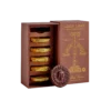 A rich and smooth orange and almond gianduja—creamy, grounding, dotted with warming chunks of ginger. Enrobed in single origin dark cacao and topped with tangy orange crystals. Taste uplifting citrus notes blended with spicy ginger and dark earthy cacao; reminiscent of picking fresh oranges with bare feet on the earth. A decadent romance of spice, sweetness, and bright citrus alchemy.