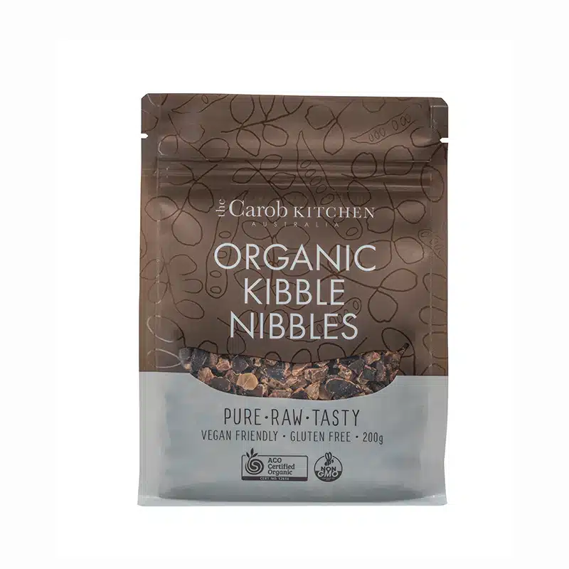 Our Australian grown organic carob nibs are nothing but pure carob bean. Named after the machine that removes the seed from the husk, our kibble nibbles are a sweet lunch box filler or a healthy snack on-the-run.