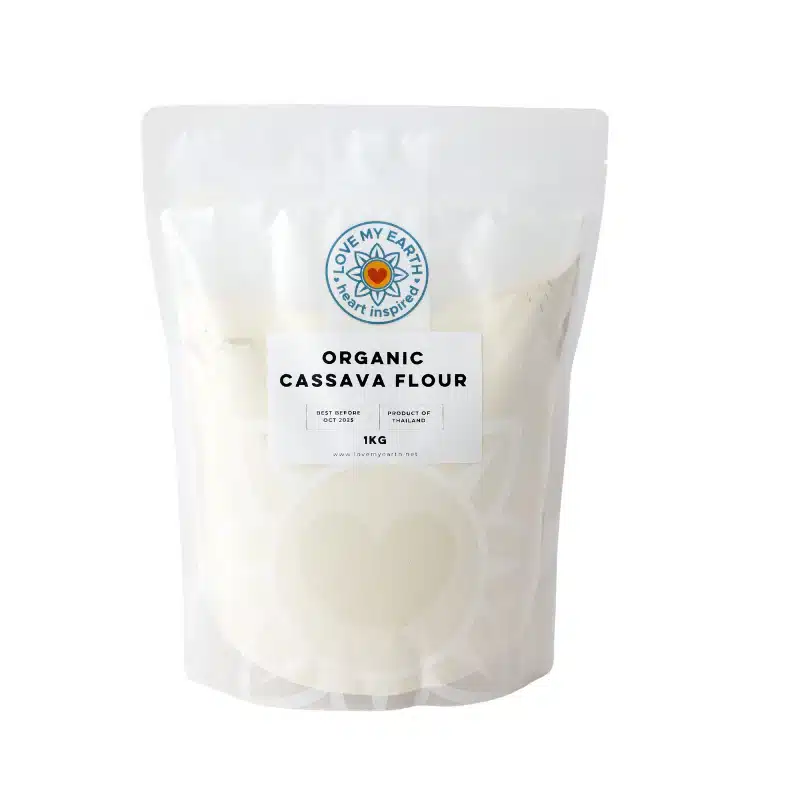 Love My Earth Organic Cassava Flour is crafted from sustainably grown cassava plants in Thailand. Carefully processed to maintain its nutritional profile and purity, this flour offers a light texture and mild taste that blends seamlessly into both savoury and sweet recipes. Unlike tapioca flour, which only uses cassava starch, cassava flour is made from the whole root, retaining its fibre and nutrients for a wholesome, plant-based option.