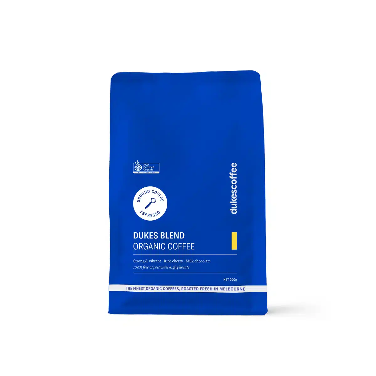 Dukes Blend Espresso is an organic, specialty-grade coffee crafted for a rich, full-bodied and beautifully balanced cup. Ground specifically for espresso, it showcases a complex flavour profile with bright red apple acidity, caramel sweetness and smooth milk-chocolate depth, finishing with subtle cherry notes. Ideal for espresso machines, stovetops or strong, concentrated brews.