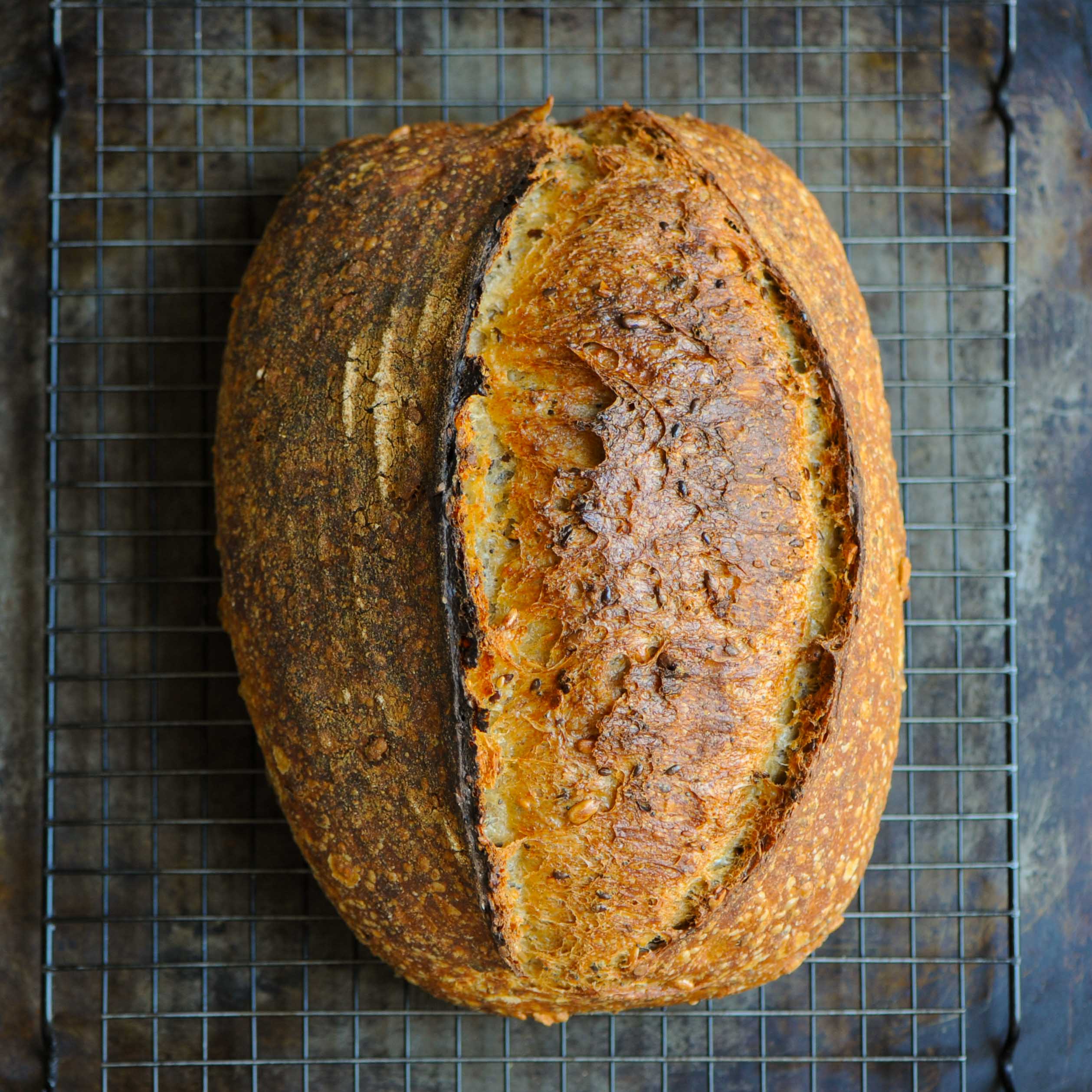 Seeded sourdough breads like this one are valued for their balance of flavour and texture. The fermentation process gives the loaf its characteristic tang, while the inclusion of multiple seeds adds a layered bite that works well across a range of meals.
