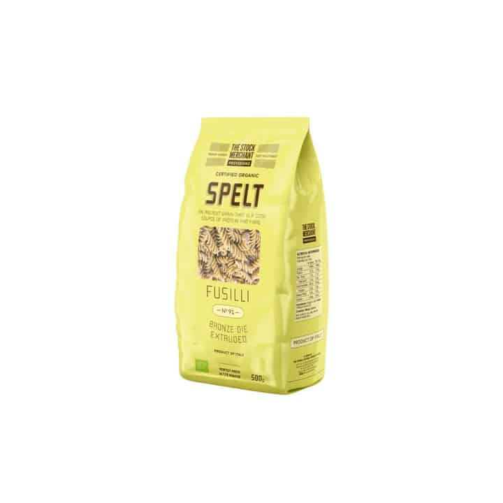 The Stock Merchant Organic Spelt Fusilli Pasta is a traditional style organic pasta made using organic spelt wheat flour. Formed into a classic fusilli shape, it is designed to hold sauces well, making it a reliable choice for a wide range of meals.