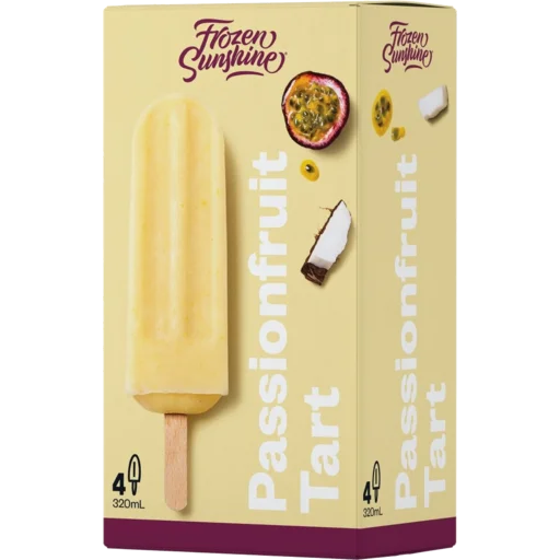 Protein: <1 g Sodium: <50 mg Serving Suggestions Enjoy straight from the freezer for a creamy, refreshing treat. Perfect for hot days, dessert cravings, kids’ treats, events or anytime you want a clean, fruity, plant-based indulgence. Storage Instructions Keep frozen at or below –18°C. Do not refreeze once thawed. Store upright for best shape and texture. Why You’ll Love It Organic coconut cream for silky smoothness Real passionfruit pulp for bright, tangy flavour Vegan-friendly No artificial colours A deliciously creamy, tropical classic Four dreamy treats per pack A tart, creamy passionfruit escape — now packaged perfectly for sharing (or not!).