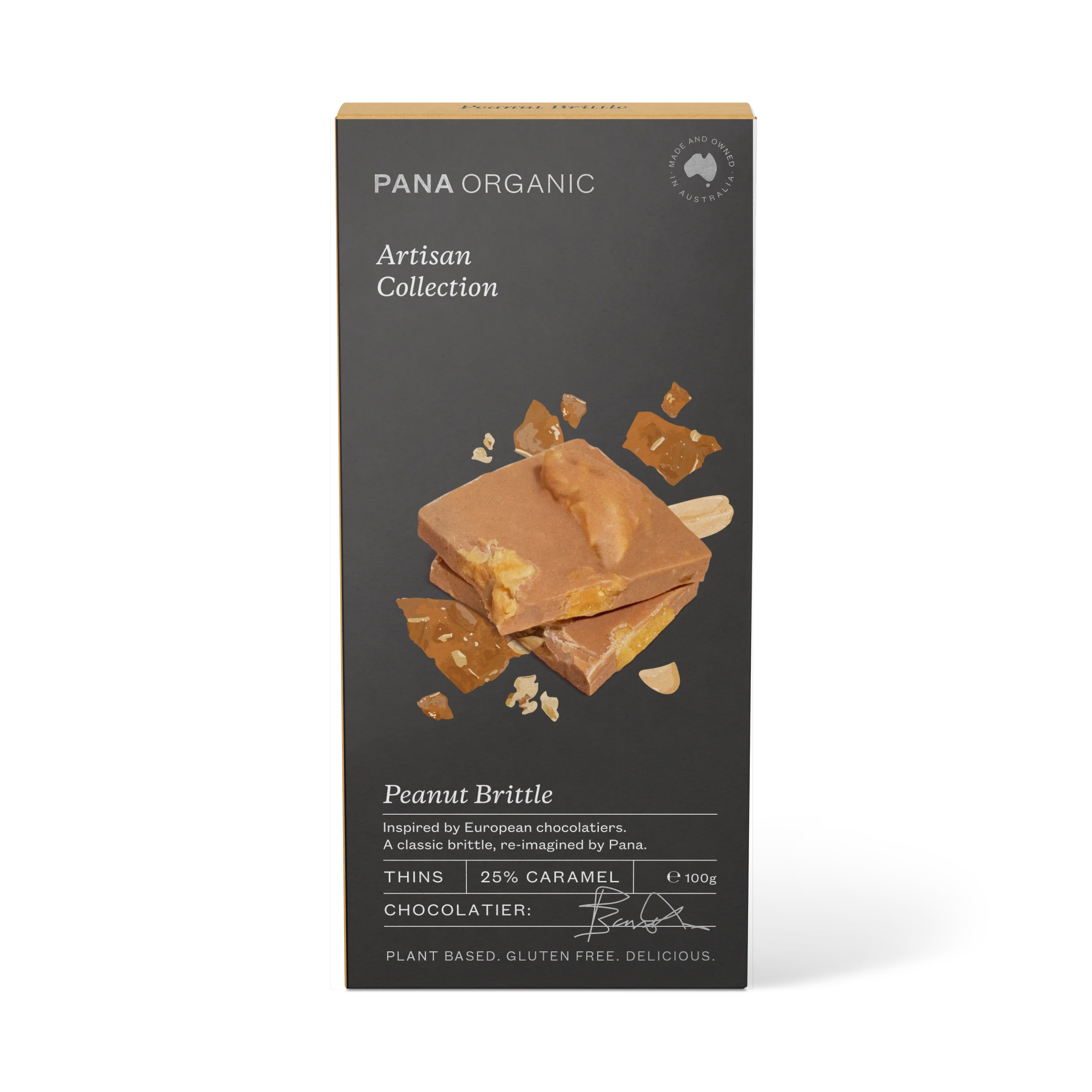The Artisan Collection, a handmade, specially crafted range by Pana Barbounis, founder and Head Chocolatier. A hand crafted brittle is dipped into a delicious dark chocolate for a sweet, extra chewy and extra crunchy treat.