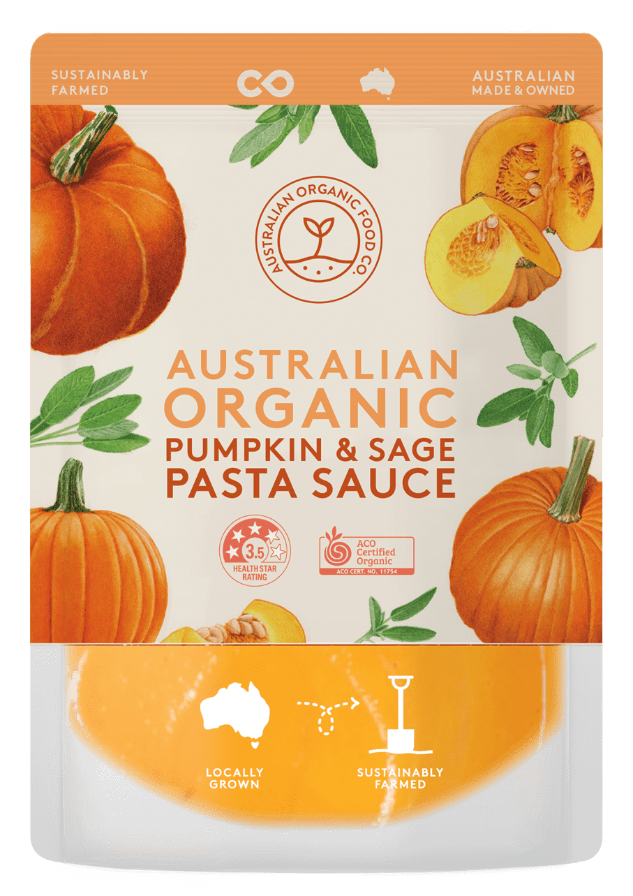 Australian Organic Food Co. Pumpkin & Sage Pasta Sauce is a rich, velvety blend of organic pumpkin, tomato paste, aromatic sage, garlic, and a touch of organic cream for natural creaminess. Crafted with premium organic ingredients, this sauce offers a warm, earthy flavour complemented by fragrant herbs and a satisfying, smooth texture.