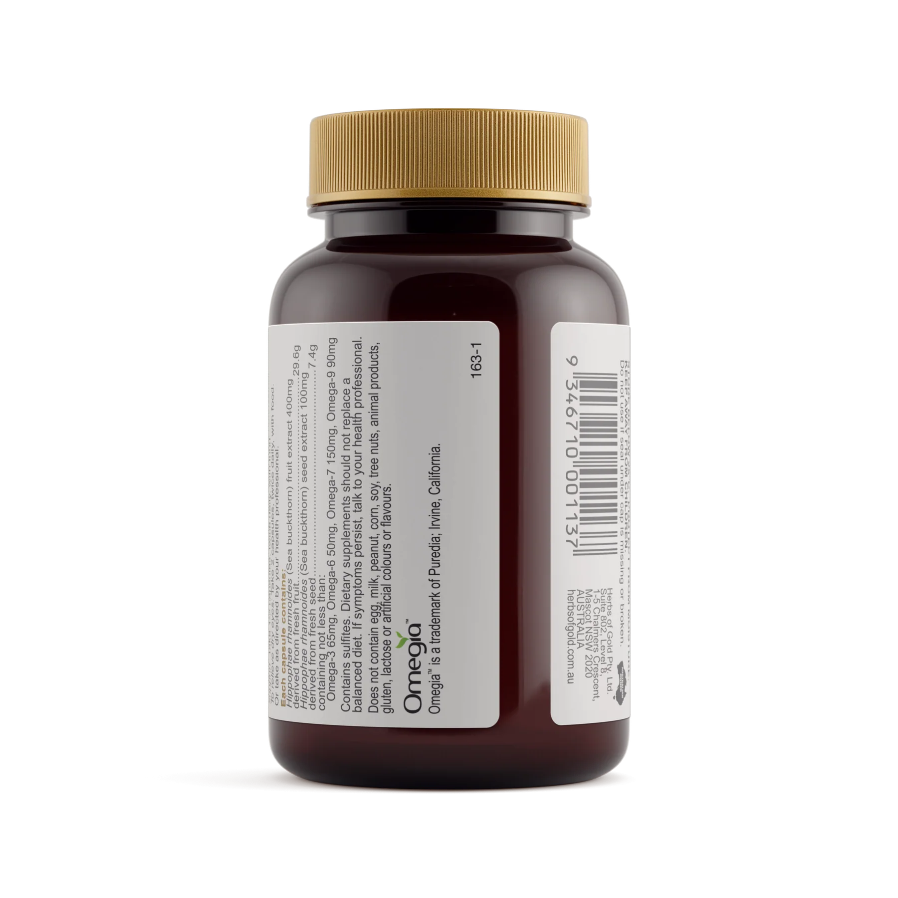 - Sea Buckthorn Oil contains Omegia™, a high-grade, sustainably sourced Sea buckthorn oil that provides a balanced profile of omega-3, 6, 7 and 9 fatty acids. The premium grade Omegia™ guarantees product potency as the oil can be greatly affected by environmental growing conditions.