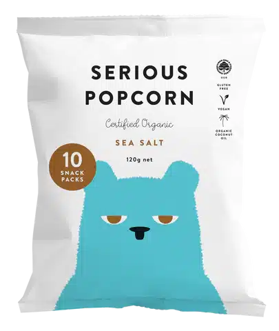 Serious Popcorn is known for keeping recipes honest and ingredient lists short. This sea salt snack pack is designed for convenience and portion control, making it suitable for lunchboxes, work snacks, or sharing between meals.