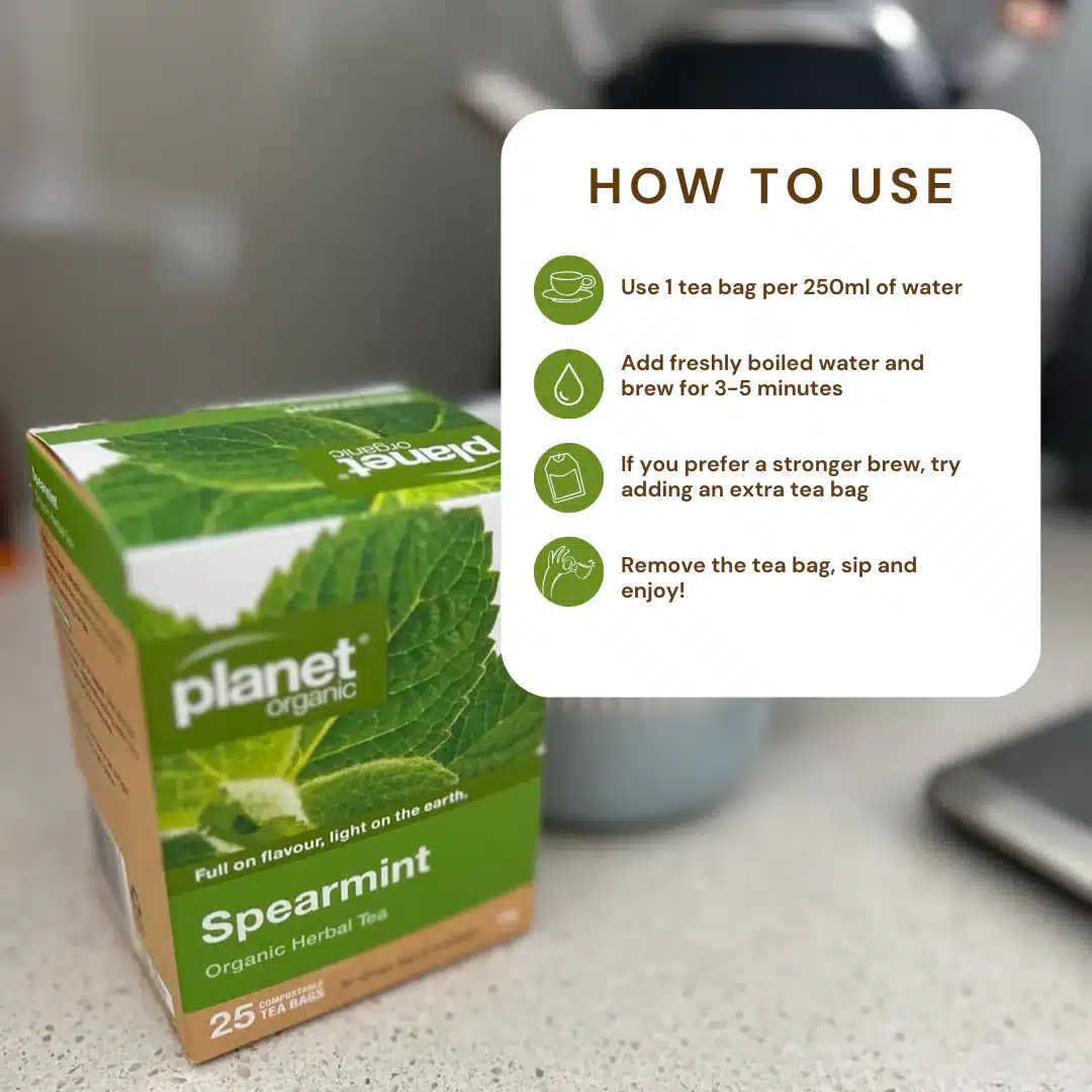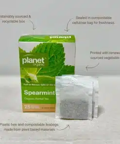 Planet Organic Spearmint Tea is a pure, certified organic herbal infusion crafted from high-quality spearmint leaves. With its naturally sweet, cooling flavour and crisp aroma, this refreshing tea is perfect for quiet moments, afternoon clarity or a calming break in your day. A beautifully clean and uplifting herbal brew made for everyday enjoyment.
