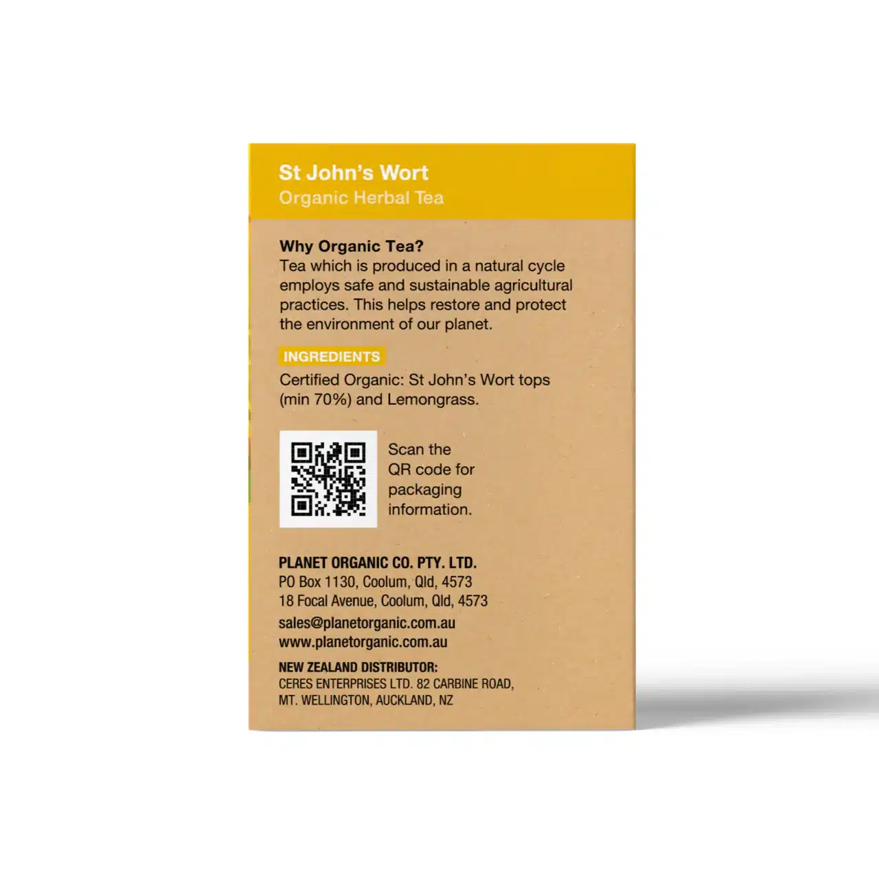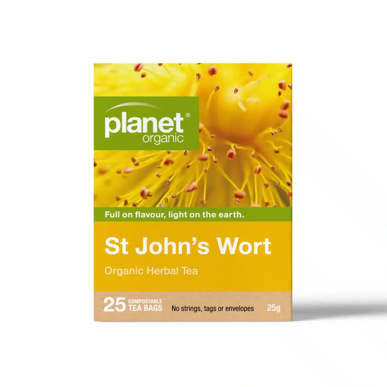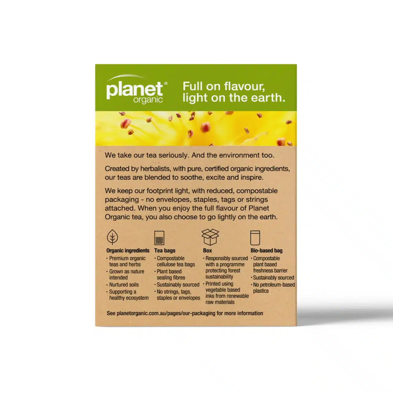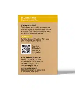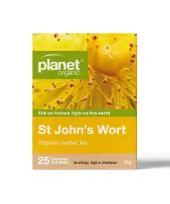 Planet Organic St John’s Wort Tea is a certified organic herbal infusion crafted from St John’s Wort tops and refreshing lemongrass. With gentle woody notes and a soothing aroma, this tea is designed for moments when you need grounding, calm and balance. A warm, restorative brew ideal for afternoon or evening relaxation.