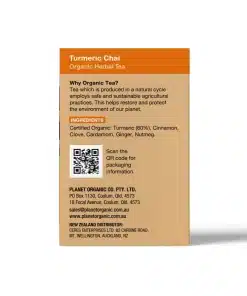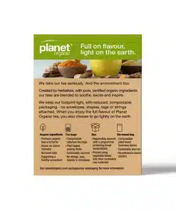 Planet Organic Turmeric Chai combines earthy turmeric with a fragrant blend of traditional chai spices. This certified organic infusion delivers a warm, aromatic cup that awakens the senses and brings the depth of oriental flavours to your daily ritual. Naturally caffeine free and perfect for soothing, grounding moments throughout the day.