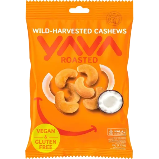 Yava Wild-Harvested Cashews Roasted offer a naturally savoury cashew snack with coconut, sea salt and gentle sweetness. This whole food snack is delicious.